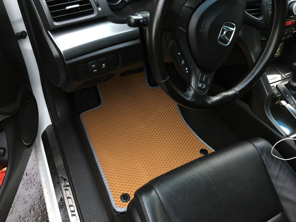 EVA коврики для автомобиля Honda Accord VIII 2007 - 2012 — это лучший выбор. Покрытие из этого ячеистого полимерного материала покупают сотни автолюбителей. Коврики из ЭВА долговечные, прочные, красивые. Сроки службы изделий — от 5 лет. Они не выделяют вредных веществ, ничем не пахнут. Коврики защищают пол автомобиля от грязи и влаги, а салон — от лишней пыли.